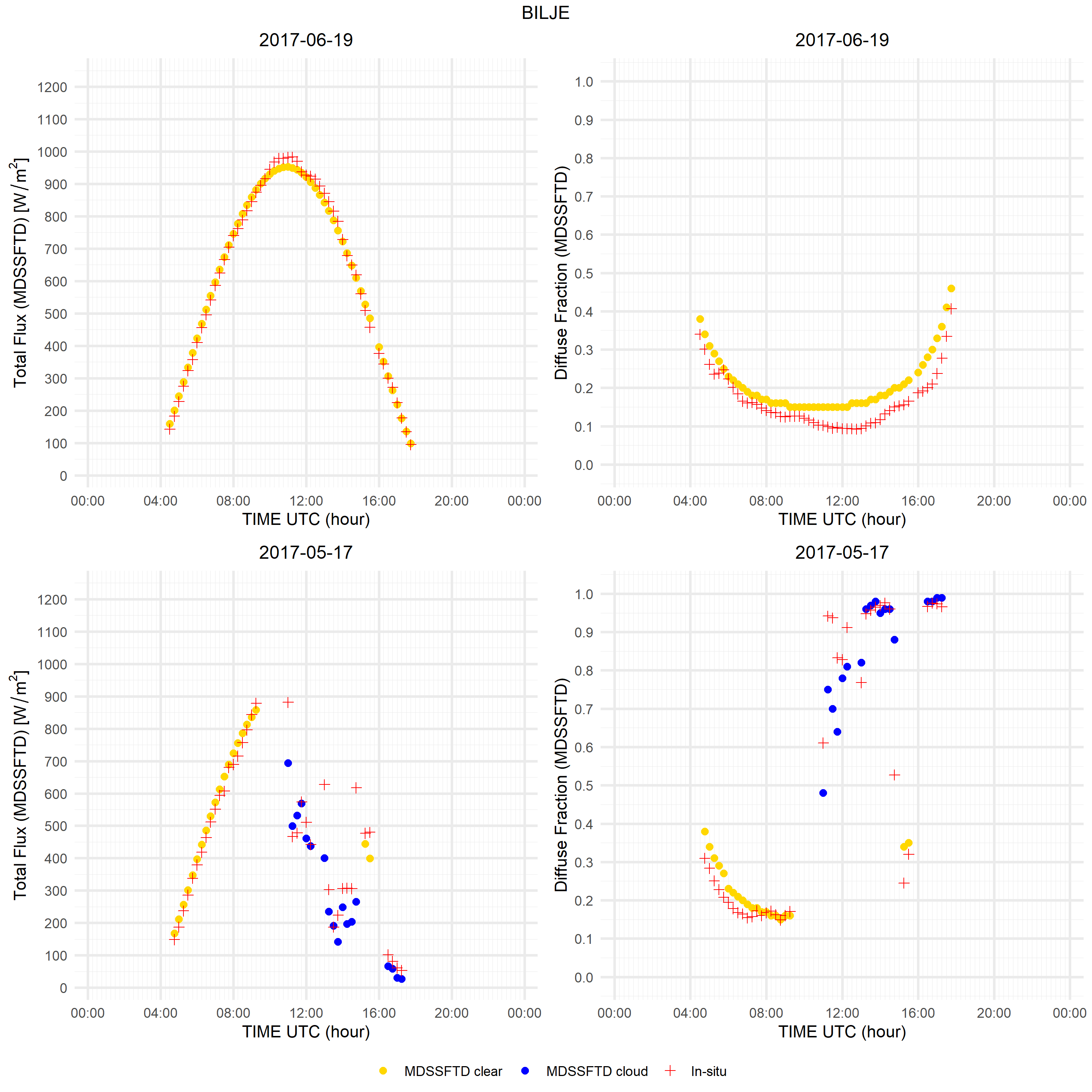 The information on solar radiation is important not only in climatological and meteorological models, but also in the energy sector and agriculture. Since 2005 the downwelling surface short-wave radiation flux (DSSF) is operationally available from two products based on MSG/SEVIRI: the MSG Downward Shortwave Surface flux (MDSSF, LSA-201) provides estimates every 30 minutes, while the Daily Downward Surface Shortwave Flux (DIDSSF, LSA-203) provides daily integrals of the DSSF. In the last years a new product was developed, the MSG Total and Diffuse Downward Surface Shortwave Flux (MDSSFTD, LSA-207).
