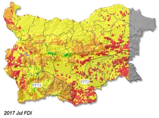 Regional scale mapping of bioclimatic susceptibility to biomass burning and fire regimes is useful for understanding sustainability of environment and possible disturbance-vegetation-climate interactions. Using LSA SAF FRM product as a background, fire risk is characterized by using a new derived index FDI (Fire Danger Index), discretized in 5 classes of risk.