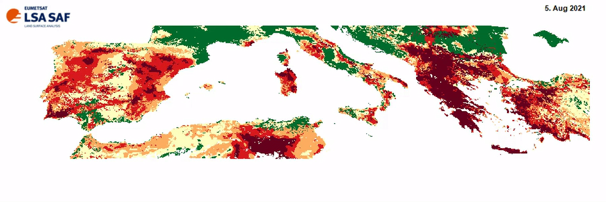 During summer 2021 many wildfires broke out over Mediterranean Europe after a long period of warm and dry weather and have destroyed excessive forest areas and other ecosystems, which will take years to recover.