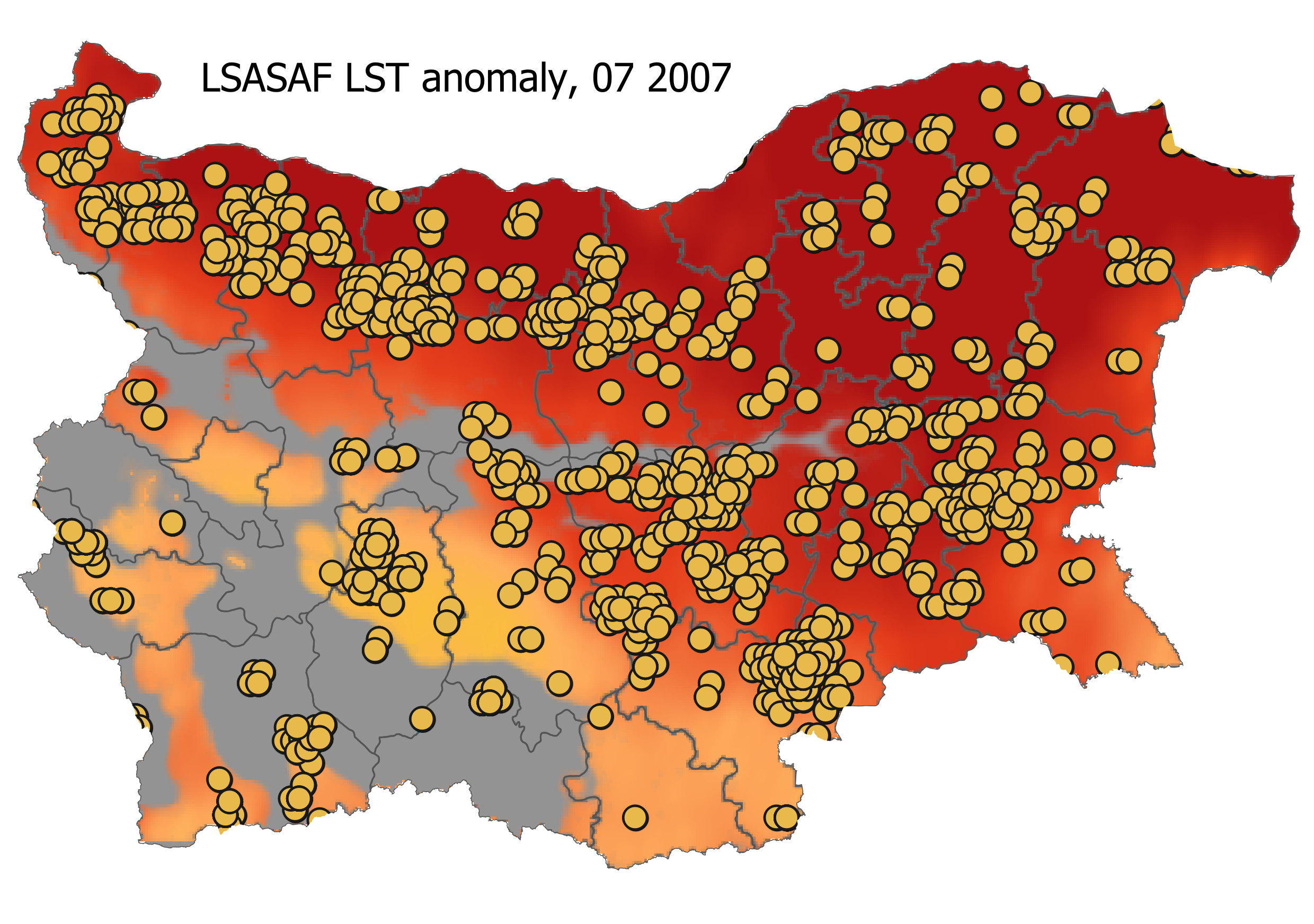 Land Surface Temperature (LST) and its anomalies derived from geostationary MSG satellite observations are used as biophysical indices of drought across the climatic gradient over Eastern Mediterranean region (Bulgaria) and of vulnerability to biomass burning (delineated here into different land cover types). Utility of their use in characterizing fire activity and severity, here derived by LSASAF FRP-Pixel product is illustrated.