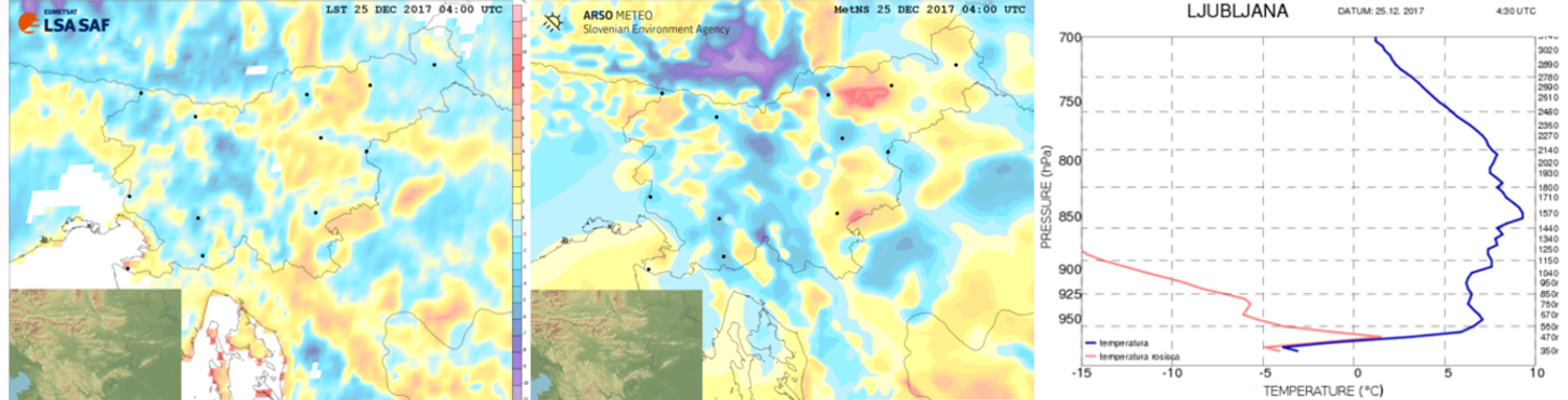 In winter cold-air pools in the lowest layers of the atmosphere are frequently formed due to night-time cooling. This can result in significant temperature inversion in valleys and basins. A typical weather situation with a pronounced temperature inversion developed in late December over Slovenia.