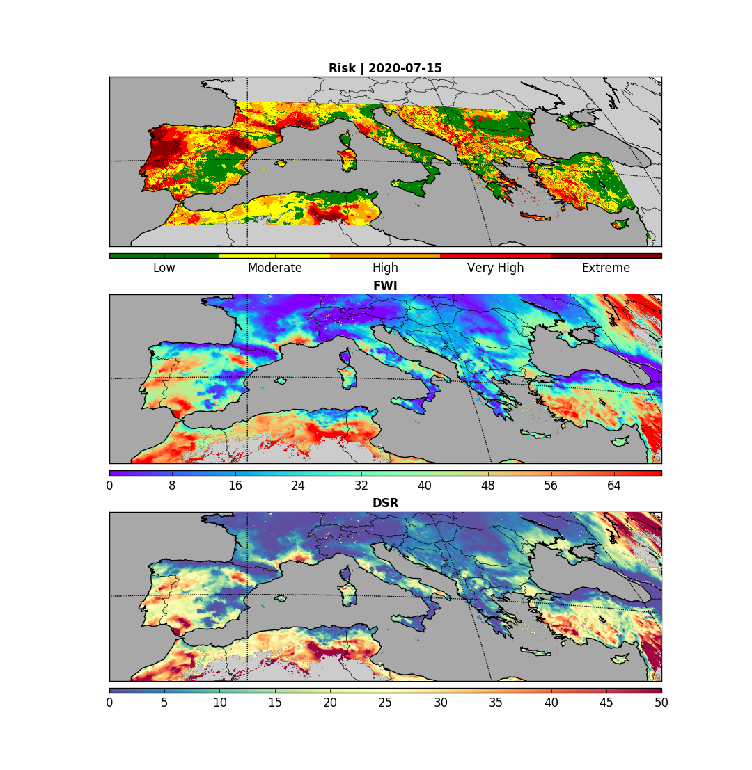 Rural fires are common events in ecosystems characterized by oscillations between rainy and drought periods, which inevitably lead to high levels of vegetation stress and to the accumulation of fuels during the dry phase. This is particularly true in Mediterranean region, where rainy and mild winters are followed by warm and dry summers. Meteorological factors play a crucial role in the setting and spreading of wildfire and are an important factor in the resulting fire severity. Fire risk indices may be based on single or combined use of meteorological observations, weather forecast model outputs and remote sensing estimations. The latter are particularly useful to identify pre-fire indicators (e.g. signals of vegetation stress), which merged with meteorological parameters may lead to the formulation of indicators of fire risk.